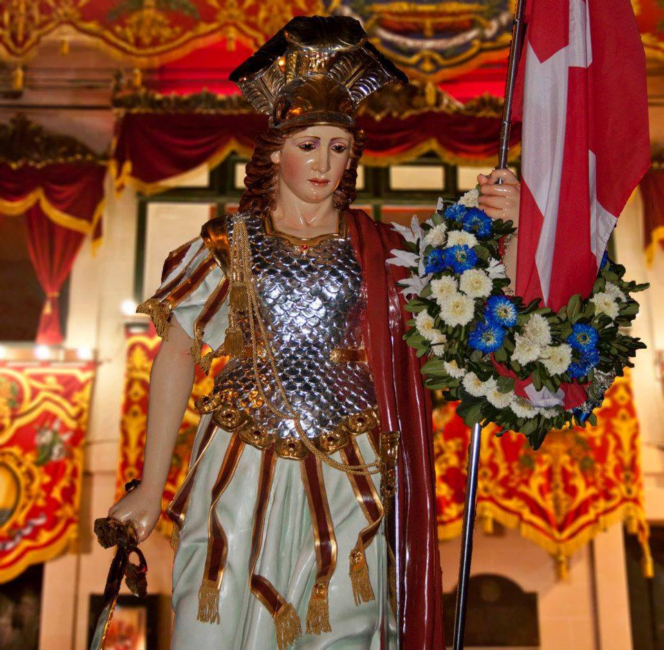 Saturday: A traditional lunch is organised in Kalkara Creek by the members of the band club ‘Għaqda Mużikali San Ġużepp’, then in the evening, a band march is organised by the same band in the lower parts of the village carrying a statue of a female warrior shoulder-high representing the triumphant Malta during the Great Siege. A parade is held by the enthusiasts when the march reaches Holy Family Square taunting the rival band club with cheering, singing, marches and sonnets. During the route, several families put flowers and wreaths in the flagpole held by the hands of the same statue from home balconies along with cheering, clapping and throwing of paper shreds. By the end of the march, the statue is raised on a pedestal in Kalkara Creek with pomp, cheering, singing, dancing, paper cannons, fire crackers and aerial fireworks following by a ground fireworks display.